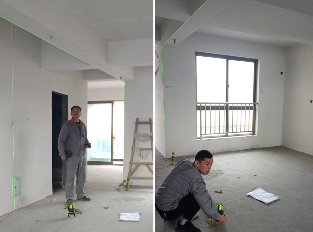 项目经理现场校准墙体位置