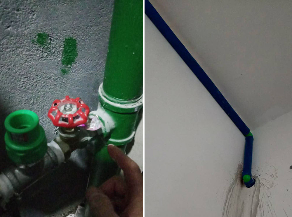 从隔壁水管中分离出自己的水表 用三通 水管表面套棉 防止凝结水
